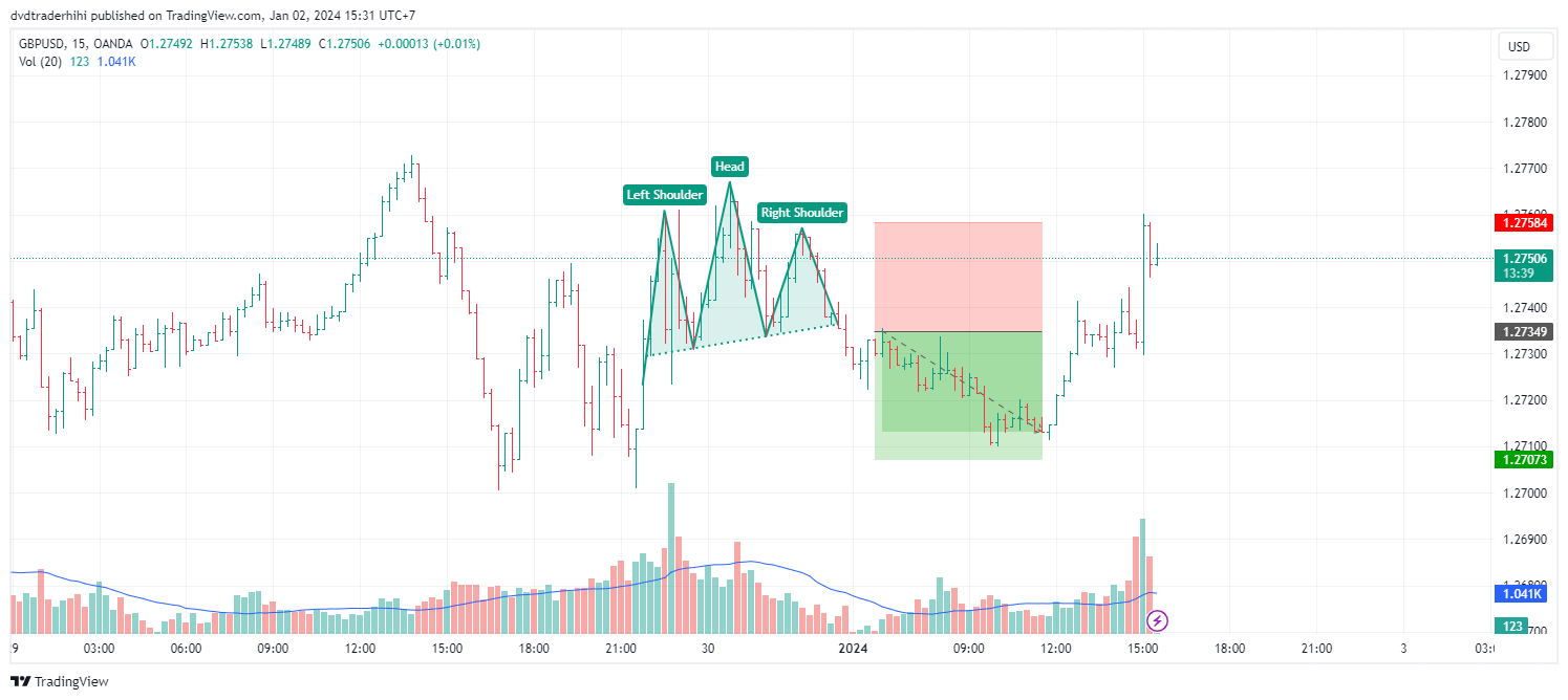 Trade 023: GBPUSD, vai đầu vai, 2/1/2024: