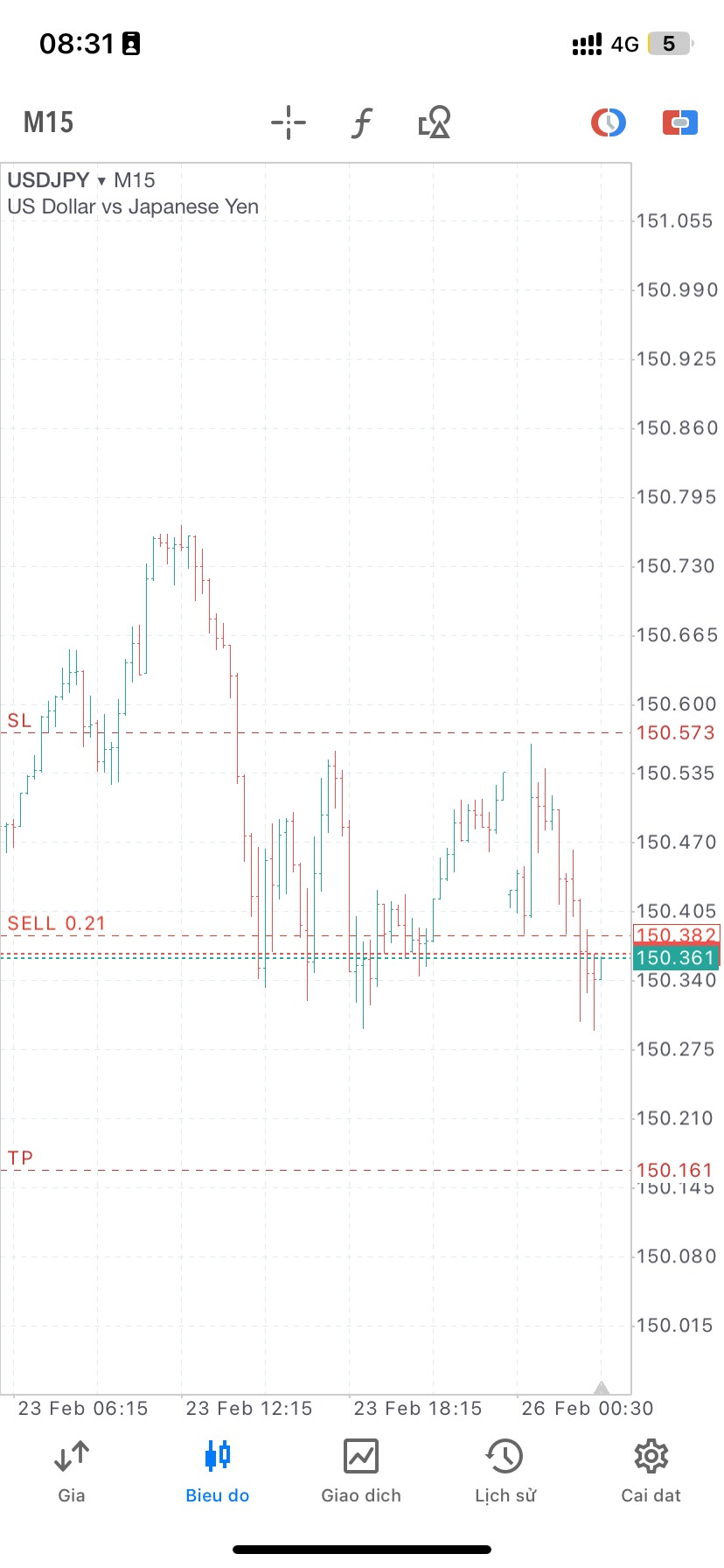 Lệnh đã close, lãi.Trade 008: USDJPY, 2 đáy, 27/2/2024: