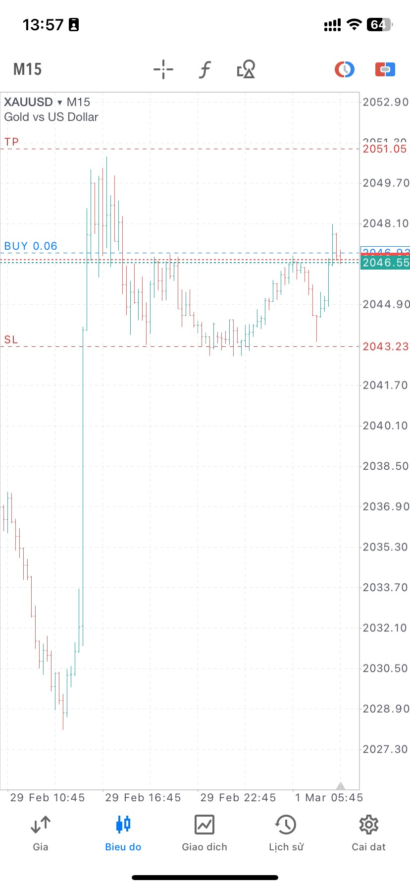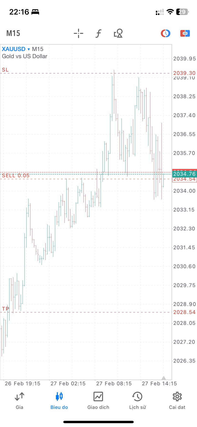 Lệnh đã close, lãi.Trade 009: XAUUSD, 2 đỉnh, 27/2/2024: