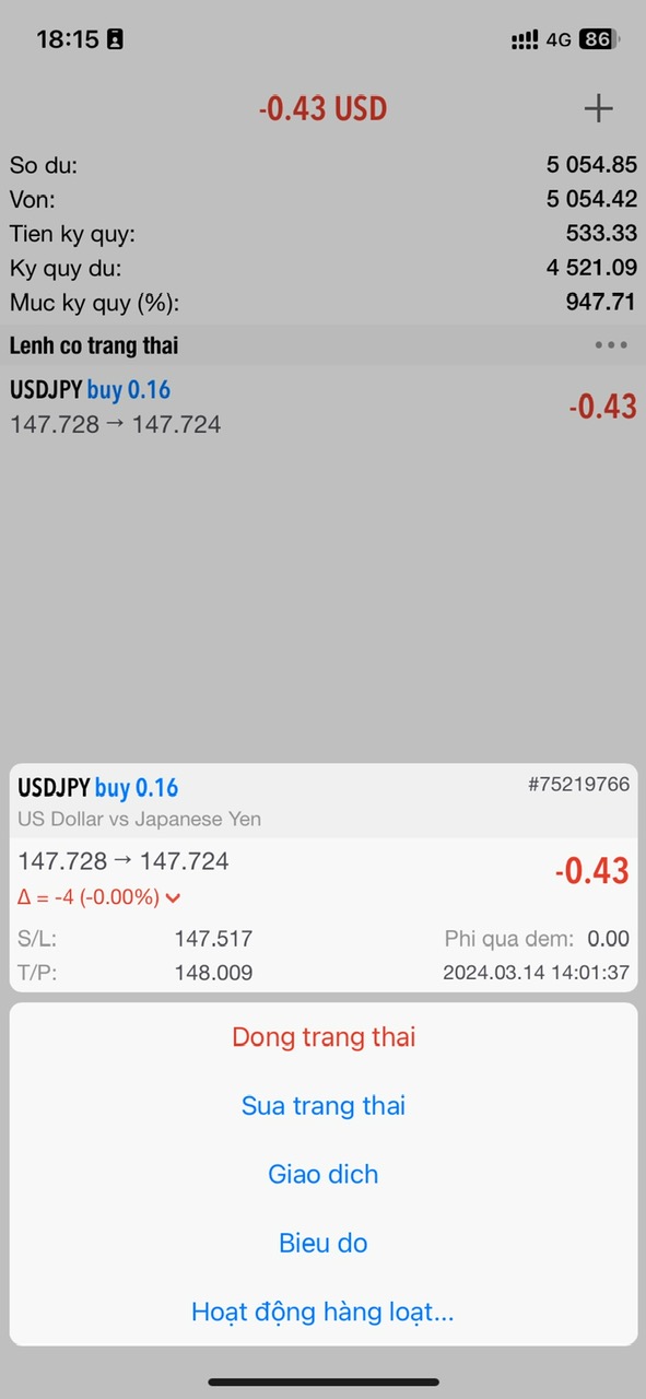 Lệnh đã close, lãi.Trade 025: USDJPY, 2 đỉnh, 26/3/2024: