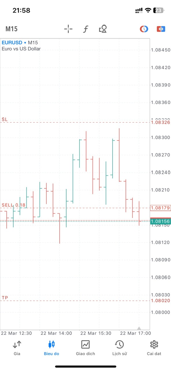 Lệnh đã close, lãi.Trade 021: EURUSD, 2 đỉnh, 22/3/2024: