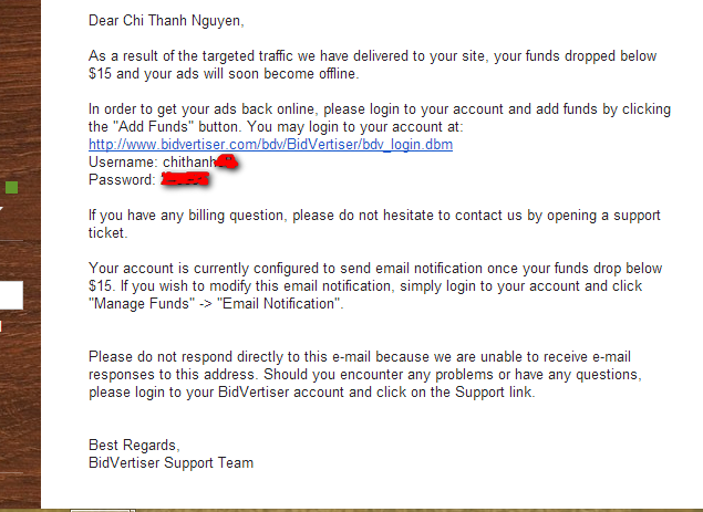 Mình mới chơi BidVertiser và kiếm được một khoản, hôm nay mở Mail ra thấy nó thông báo thế này: Ai biết nó có nghĩa gì và có nên add funds như nó nói không?
