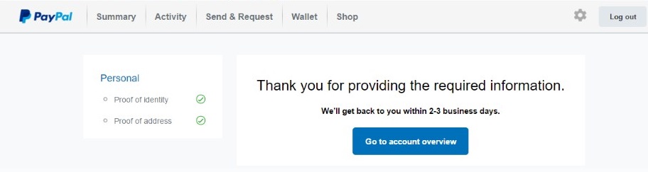 Vấn đề Paypal (Ebay): Verify identity