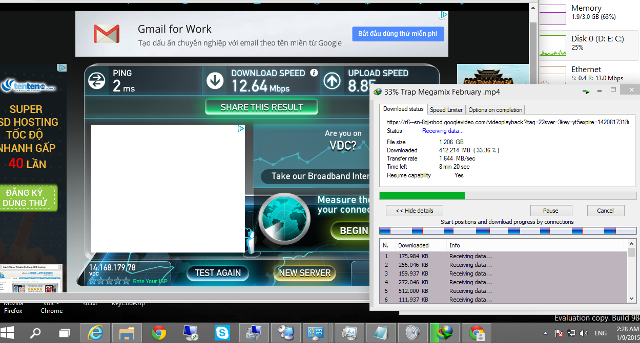 e test speedtest toan dc pig 3x, dowload 3mb/s.200k tháng bạn. 12mb mới lắp hồi trưa này