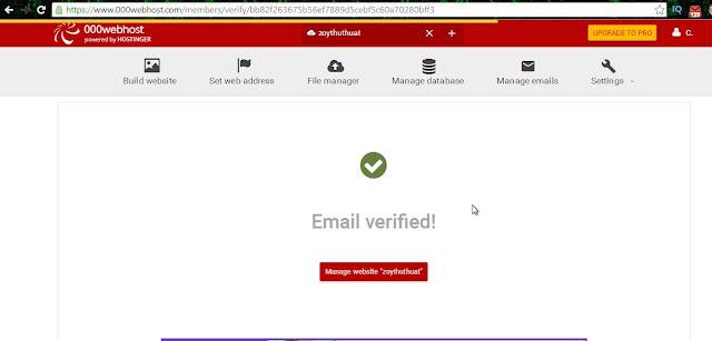 Bước 4 : Sau khi nhấp chuột vào liên kết, bạn sẽ được đưa đến trang có thông báo là đã xác minh mail " Email Verified "