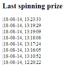 \n"; $logprize .= file_get_contents('prize.txt'); file_put_contents('prize.txt',$logprize); #### if (isset($mineprize) && stristr($prize,'1')) { echo "".$mineprize.""; } else { echo "".$mineprize.""; } // Last ?>