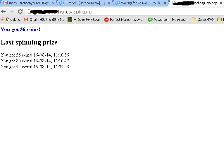 Unrar codehotdeals.zip ra và bỏ vào đó. Xong các bạn mở file iSpin.php(Open = notepad, notepad++). Sửa info acc. Ghi vào ở giữa "(đây)" nhé