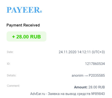 Comment: AdvEar.ru - Заявка на вывод средств №158118