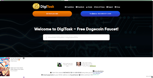 Xin chào mọi người ở bài viết này tôi sẽ hướng dẩn các bạn CHEAT satoshi DOGE nhé các bạn chỉ treo trên máy tính hoặc điện thoại và nhận tiền thôi ở đây mình hướng dẩn các bạn treo trên máy tính nhé vì treo trên điện thoại sẽ không kiếm được nhiều bằng máy tính .