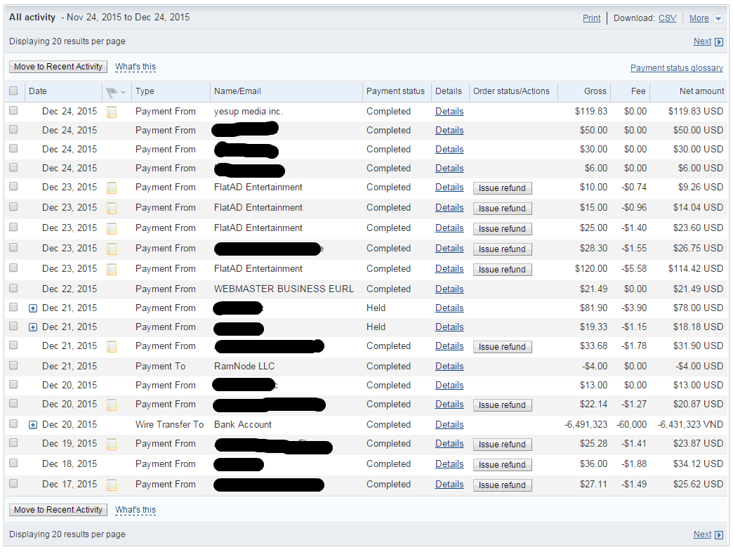 • Câu hỏi 1: hình phía dưới là payment history của network nào (ghi tên cụ thể)?