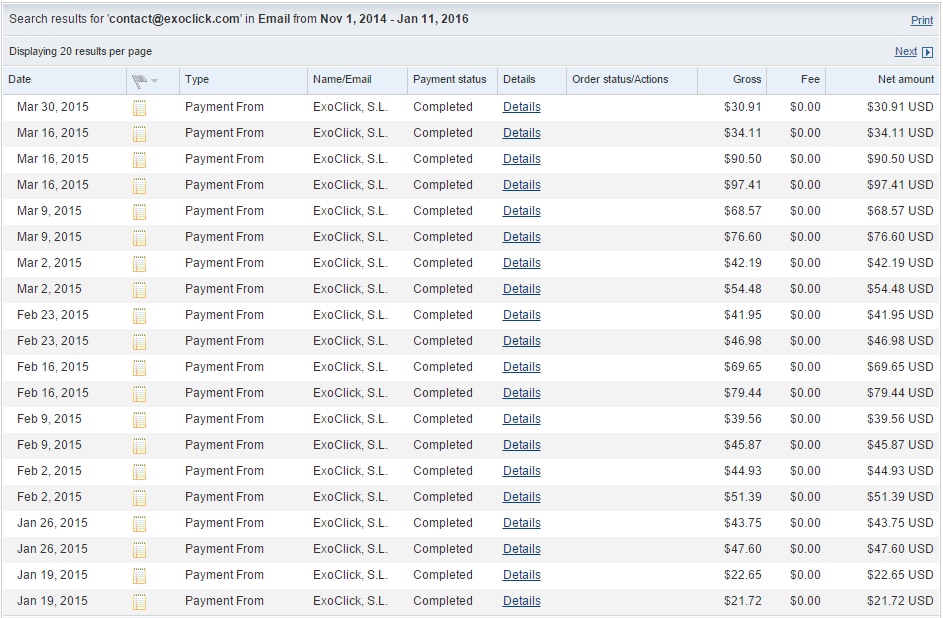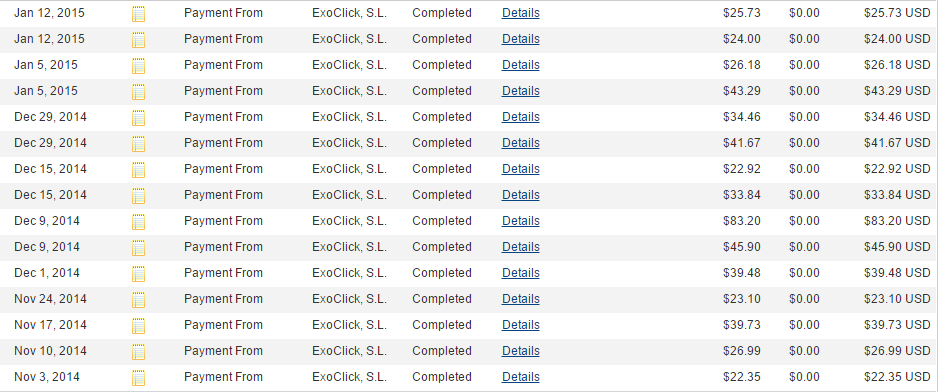 ExoClick, S.L. sent you a payment of $xxx.xx USD.