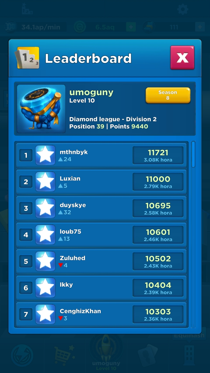 Có vẻ đầu tuần nó hiển thị ko chính xác. Mỗi tuần bây giờ sẽ sụt ~200 Hora. Đến khi 1st diamond còn khoảng 600-700 Hora thì ngưng (mức trung bình 400 Hora Diamond, 1st diamond gần gấp đôi mức trung bình).