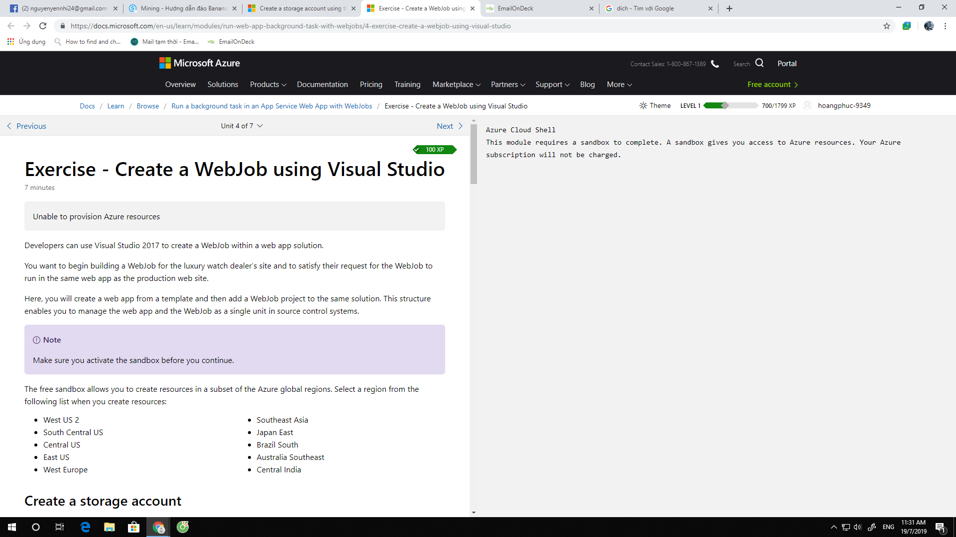 Sandbox à bạnMỌI NGƯỜI AI CÓ BIẾT CÁCH KHẮC PHỤC LỖI ''Unable to provision Azure resources''. CHỈ GIÙM HỘ CÁI.