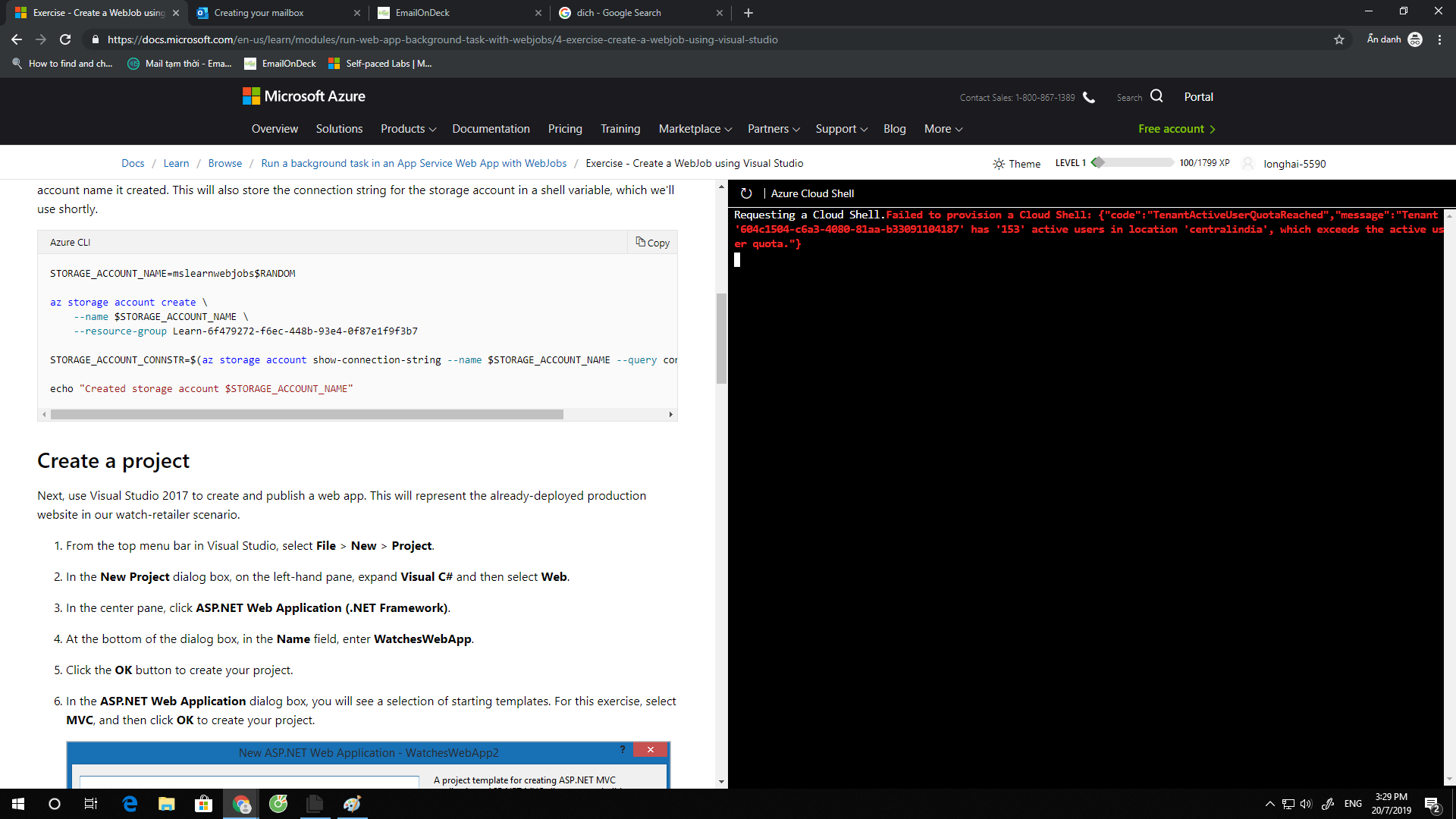 ông tạo cái mail outlook là dùng ngon lànhý ông là sandbox. sao tui reg link sanbox bị báo lỗi "Unable to provision Azure resources"