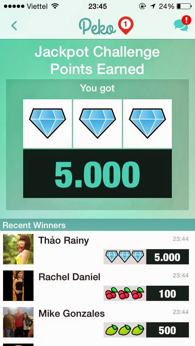 Mình trúng khá nhiều lần và cao nhất là 7777 points