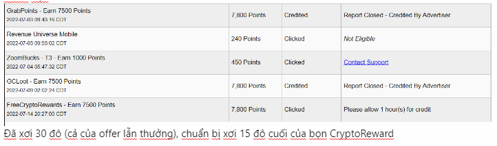 Bước 2. Chọn làm offer Grabpoints hoặc GCLoot hoặc CryptoReward (3 trang này như nhau) hoặc làm cả 3 offer thì được cỡ 45 USD