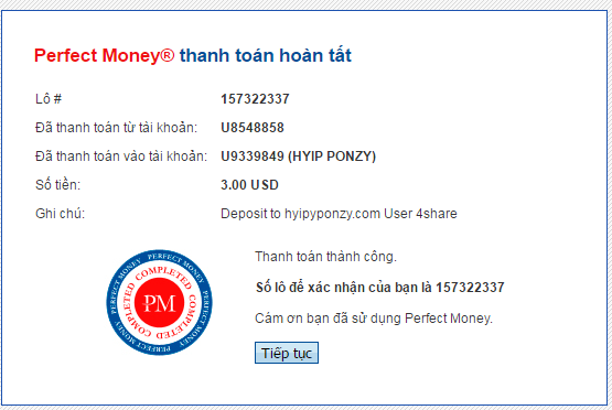 The amount of 10 USD has been withdrawn from your Perfect Money account. Accounts: U10253714->U9339849. Memo: Shopping Cart Payment. Deposit to hyipyponzy.com User viking88hp.. Date: 17:44 16.12.16. Batch: 157334545.