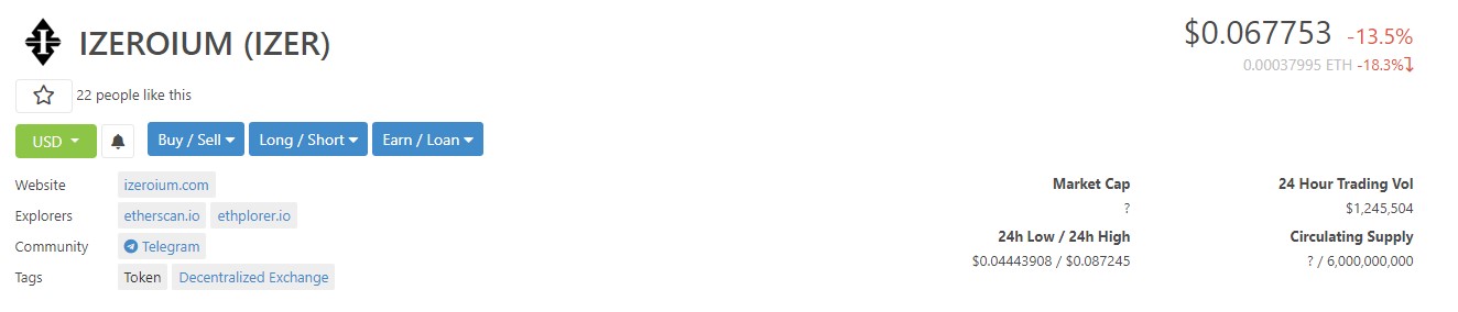Coin đã lên sàn VINDAX và CREX24 giá hiện tại là khoảng 25$ / 500 IZER cái này mình lấy theo thông tin từ Coingecko – IZEROIUM (IZER).
