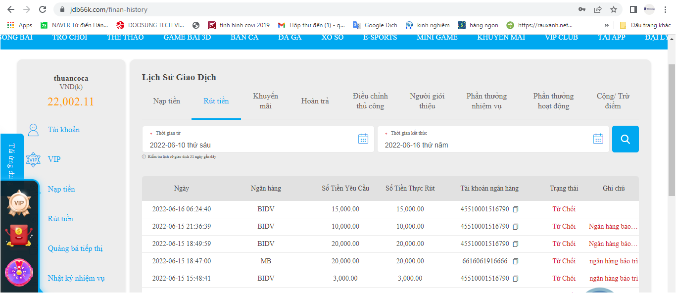 trang này lừa đảo mọi người nhé đang ký qua đại lý thì yêu cầu nạp thêm tiền để rút nạp xong lại bắt nạp tiếp , nt cho trang thì báo ngân hàng bảo trì chả hiểu luôn như này lừa đảo rồi mọi người chú ý ko mất tiền ngu như mình