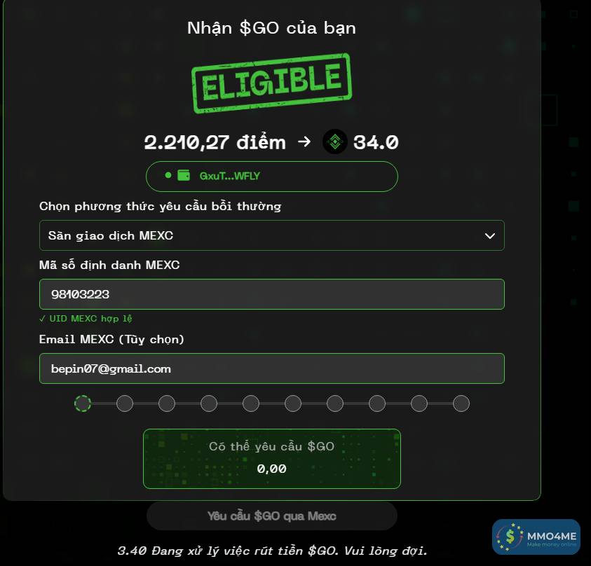 liên kết X xong nhập mã rồi, làm sao để đào bác nhỉ