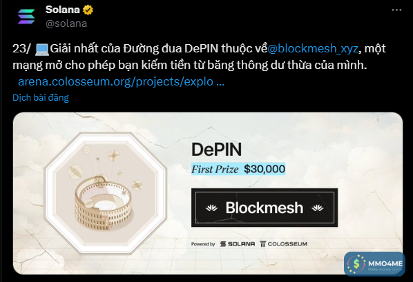 New Kèo xịn hơn Grass -> blockmesh.xyz đạt giải nhất của @ColosseumOrg và SOLANA