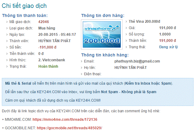 - Thanh toán qua tất cả các bank VN, Bảo Kim, PM, WMZ và BTC-E