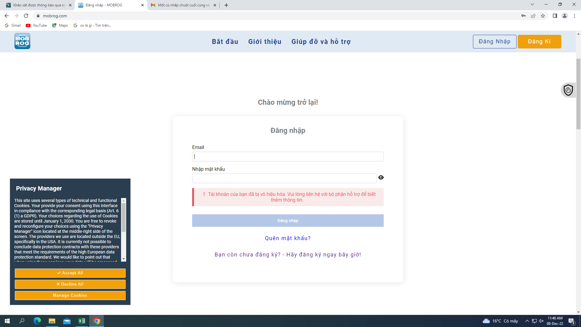 Daiyun2909 said: View attachment 209042 mình đã đăng ký và kích hoạt qua mail sao vẫn bị báo không được là sao nhỉ? Click to expand... Có acc trước đó rồi nên tạo acc mới bị ban :v