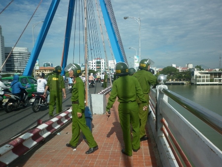 Đầu cầu Sông Hàn đang tăng cường CSGT để ngăn chặn 1 số đối tượng có ý định nhảy cầu.