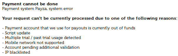 Xảy ra mấy trường hợp như nó ghi đó, thường là hết tiền, như PM hết tiền nó cũng thông báo thế mà:m122: thông báo vậy là acc coin đã bị suspend ngầm nhá....nó cứ cho chạy nhưng éo rút dc tiền đâu ...làm acc khác mà treo đi là vừa