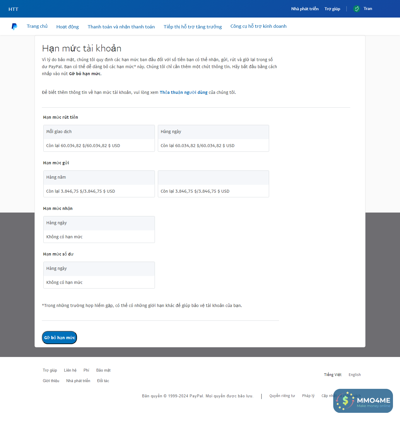 Và e rút 7$ về bank thị nó báo lỗi vượt quá hạn mức rút.