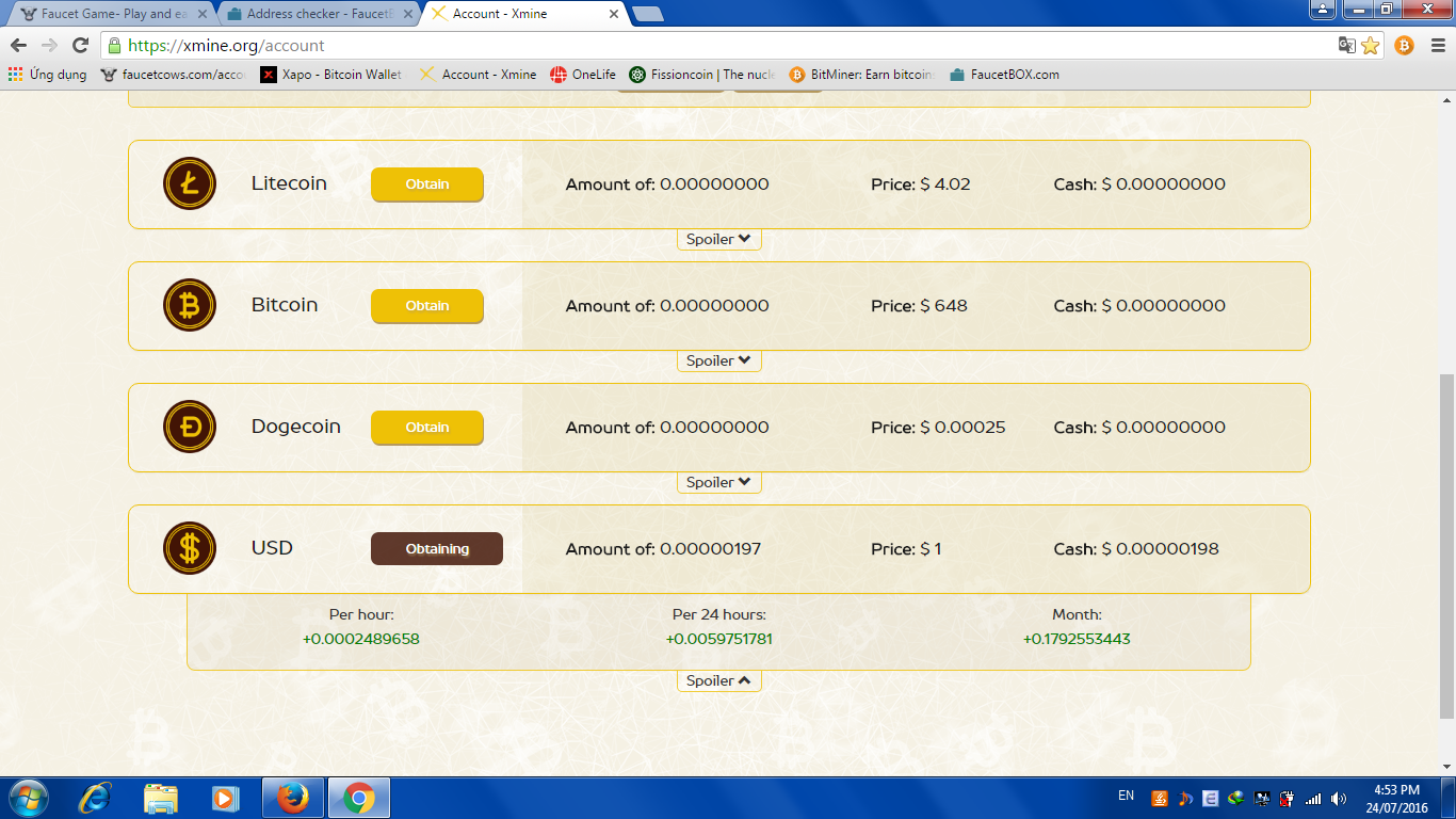 bạn muốn đào coin nào thì vào obtian như hình dưới. Ở đây mình đào xcloud