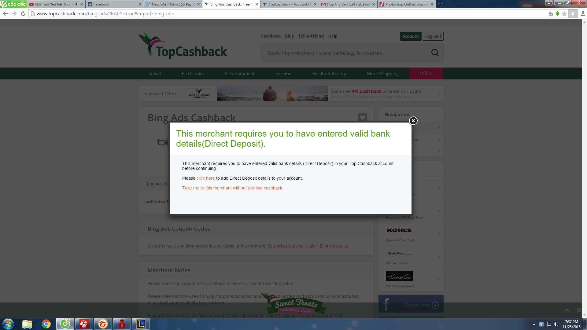 Ở bước điền payment info : https://www.topcashback.com/account/paymentdetails