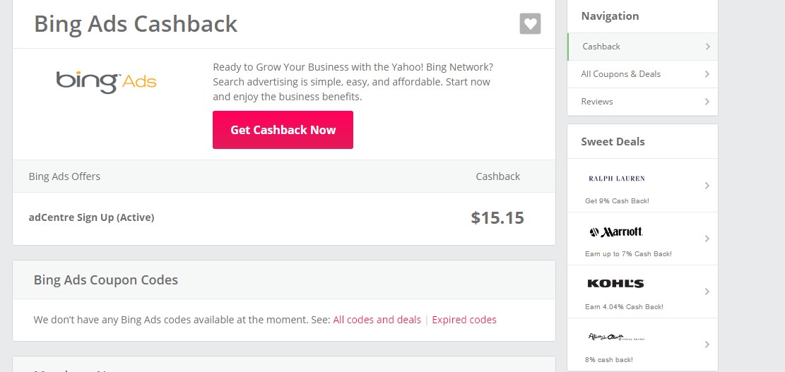 BING ADS CASHBACK can be earned simply by clicking 'Get cashback & visit retailer' button through to the merchant and shopping online as normal.