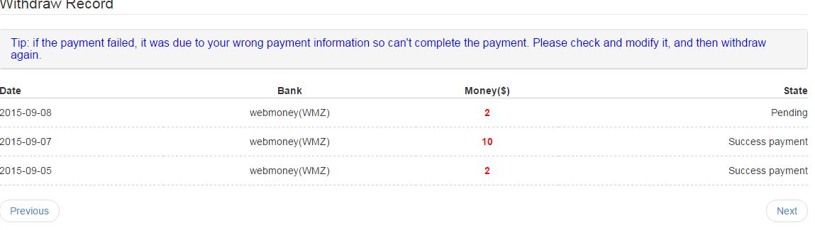 Withdraw: Thanh toán : Min 2$ thanh toán bằng paypal, payza hoặc WMZ.