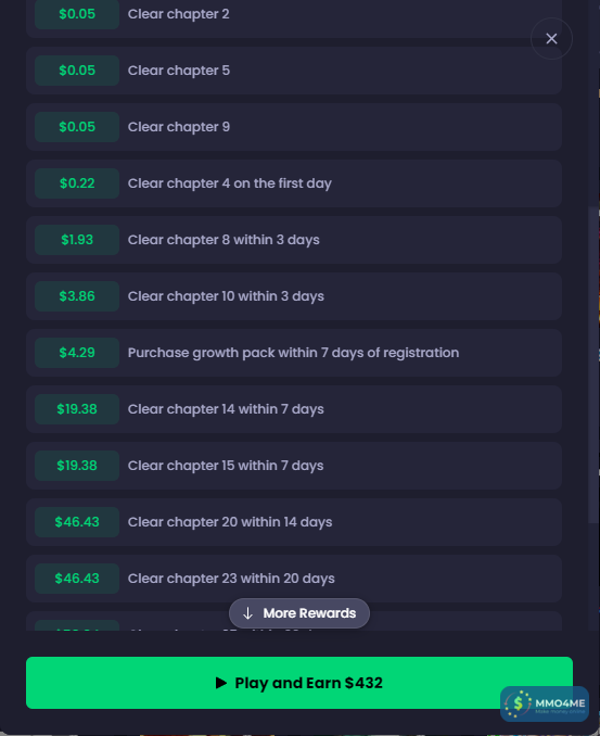 - Hoàn thành các chương: 2-4-5-8-9-10-14-15-20-23-25-30-31, gói nạp tăng trưởng 7 ngày - theo các mốc yêu cầu thời gian khác nhau 3 ngày 7 ngày ,.....