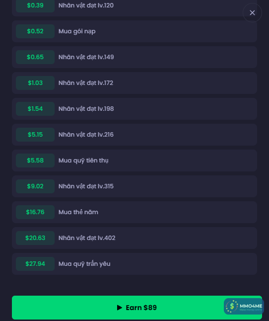- Hoàn thành nhiệm vụ: theo yêu cầu của từng offers đều ghi rõ , ví dụ: Hoàn thành chương 2- 5 - 9, nạp gói.....về các gói nạp thì theo mình các bạn không nên nạp vì phần thưởng nhận được ít hơn tiền chúng ta nạp ( nếu có nạp thì chỉ nạp phần thưởng nạp đầu để dễ chơi hơn lúc ban đầu thôi)