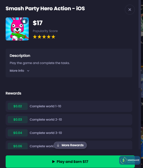 - Tại mục earn - featured offers- game Ever Legion - Play and earn - tải rồi chơi game ( ngoài ra bạn có thể vào phần offer partners - Torox hoặc MM wall , các mục sẽ có giá khác nhau)