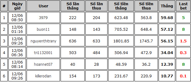 Bác Rinny làm ra cái topic này vì thấy có đồ ngon mới muốn chia sẻ cho anh em kiếm miếng chớ cũng chả xơ múi được chút gì? Thắng thì chả thấy đứa nào cảm ơn thua thì quay lại chửi?!? Cái thể loại gì đây?!? Tiên trách kỷ hậu trách nhân - trách người ta giới thiệu PR đỏ đen sao không tự trách bản thân biết số mình lọ nồi rồi con ham hố đen đỏ?!? Số các tình yêu nhọ quá thua thì ráng chịu có ai bắt các tình yêu chơi đâu?!? Mà tui thấy cái phương pháp mà bác Rinny nêu trên kia nó gần thiên về cheat hơn chỉ đơn thuần là đen đỏ! Nói gì thì nói thôi thì bác Pờ lít close bà cái thớt này cho rồi không rồi lại mang tiếng! :m020: