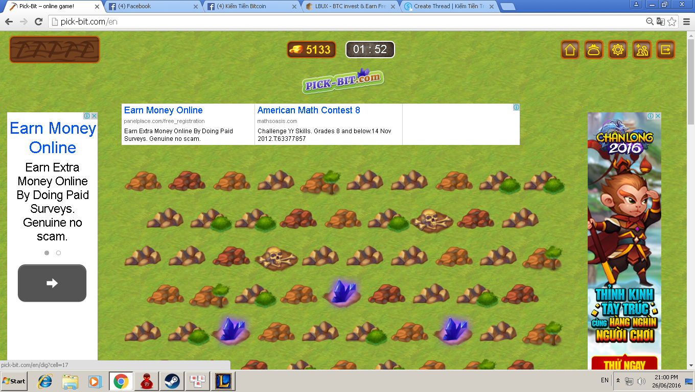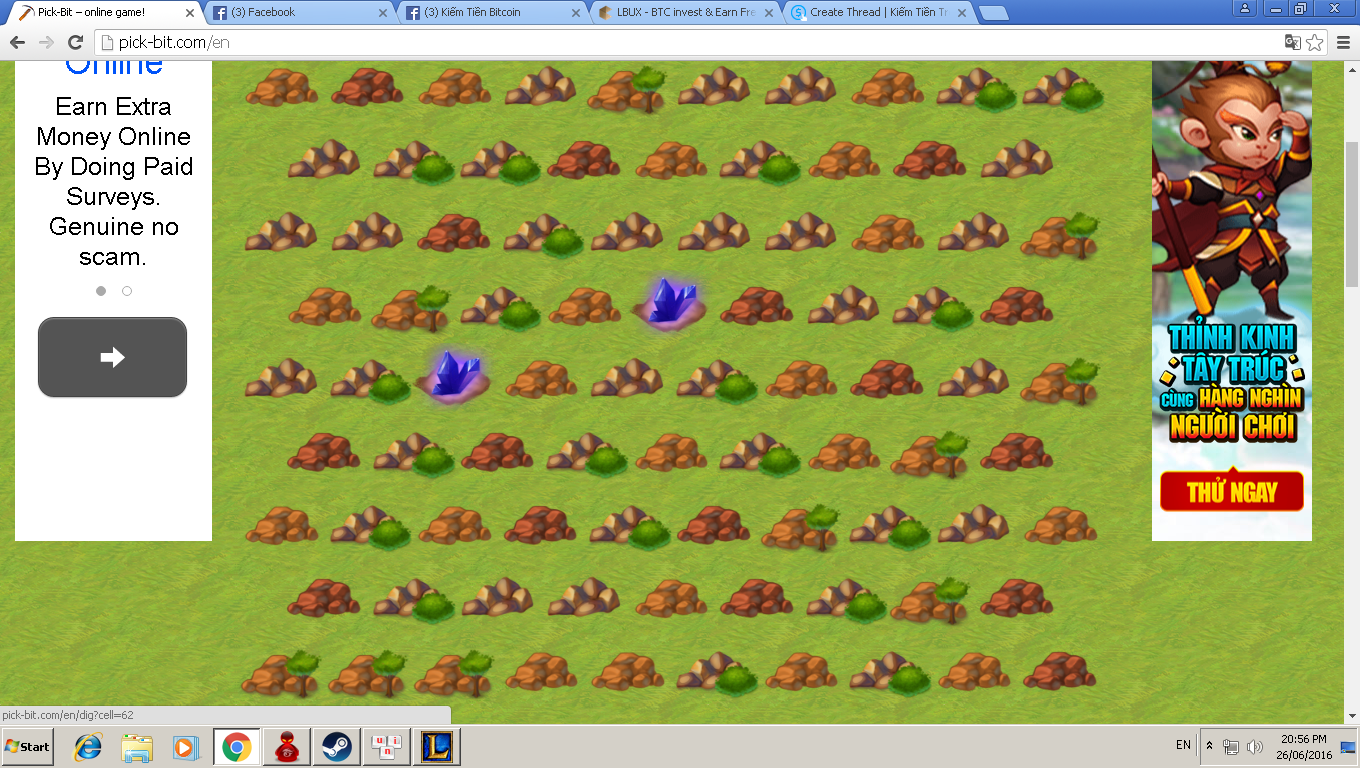 công việc rất dễ, chỉ ngồi đào vàng, nếu may mắn click đc khối vàng đc vài trăm points. còn thường thì click vào rubi. số nhọ thì click phải cái đầu lâu xương chéo :D
