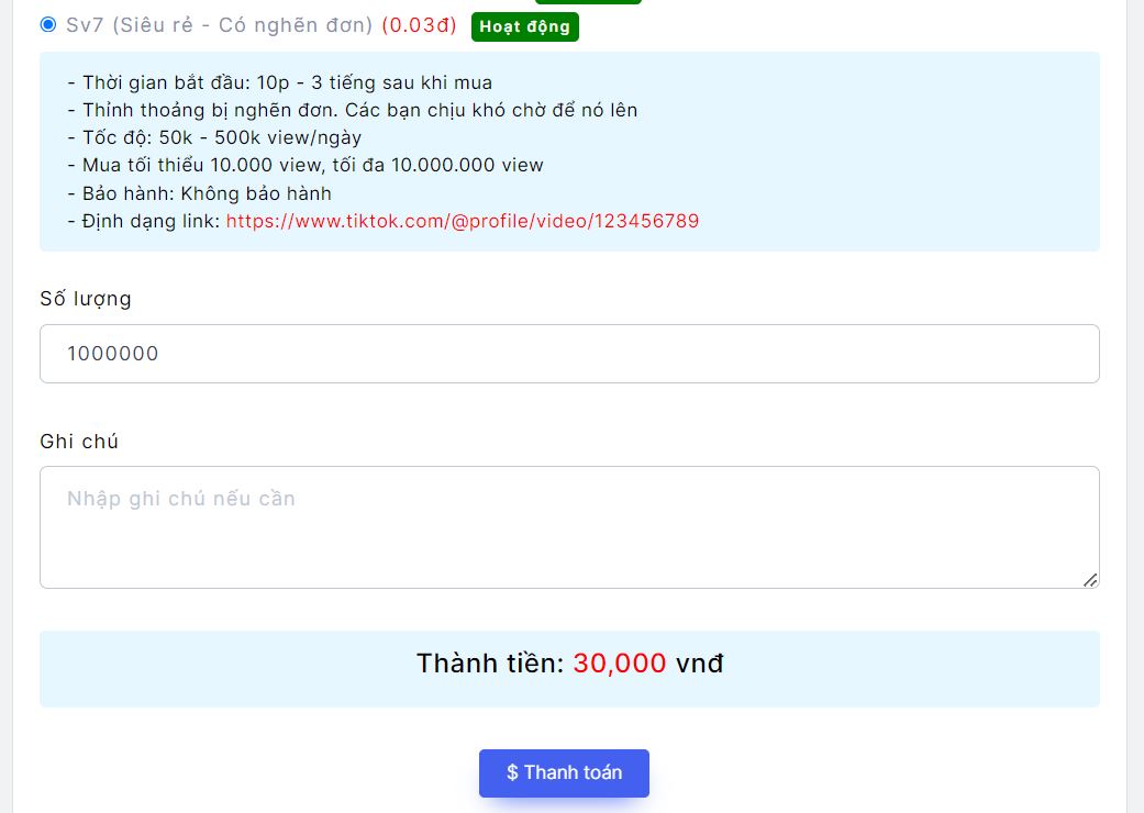 kaka, fun thôi bác. bên e thì có full dịch vụ fb, youtube, tiktok, tele, twitter.... mảng view tiktok này 1 phần nhỏ trong đó, nên cũng ko muốn dùng giá để cạnh tranh
