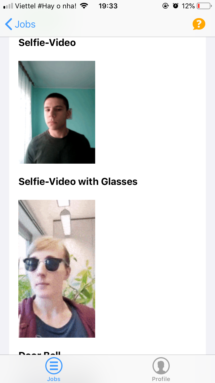 Nó sẽ yêu cầu bạn chụp ảnh chó mèo lợn gà ,ảnh bạn nhảy dây,video bạn đá cầu,chơi bóng đá hay đơn giản là chụp ảnh bạn đeo kính...Bạn hoàn thành các nhiệm vụ đó trong thời gian cho phép là có tiền