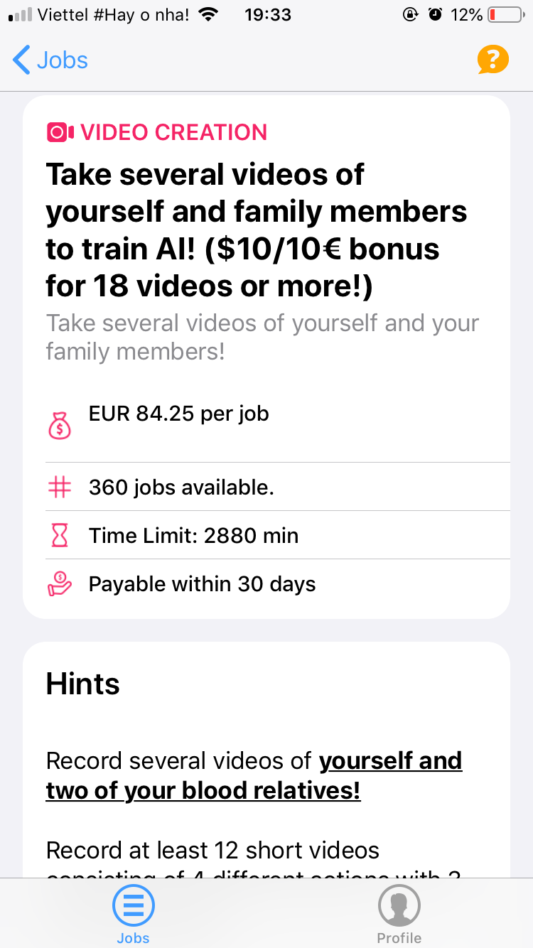 Đây là app kiếm tiền bằng cách làm nhiệm vụ chụp ảnh,quay video để training cho AI (trí tuệ nhân tạo )