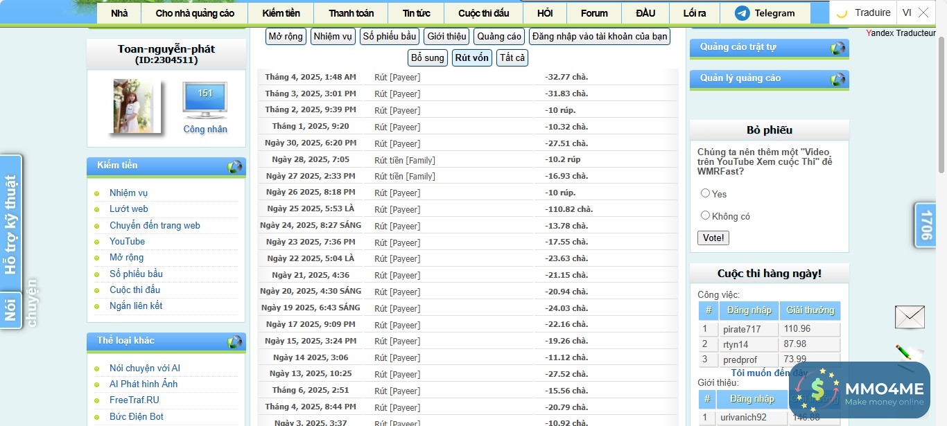 Mình đánh giá đây là một trong những site PTC Nga khá tốt, khá sòng phẳng với thành viên