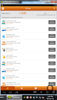 Với số điểm có được bạn có thể đổi thành thẻ cào điện thoại mệnh giá 20.000 vnđ cho tất cả nhà mạng.