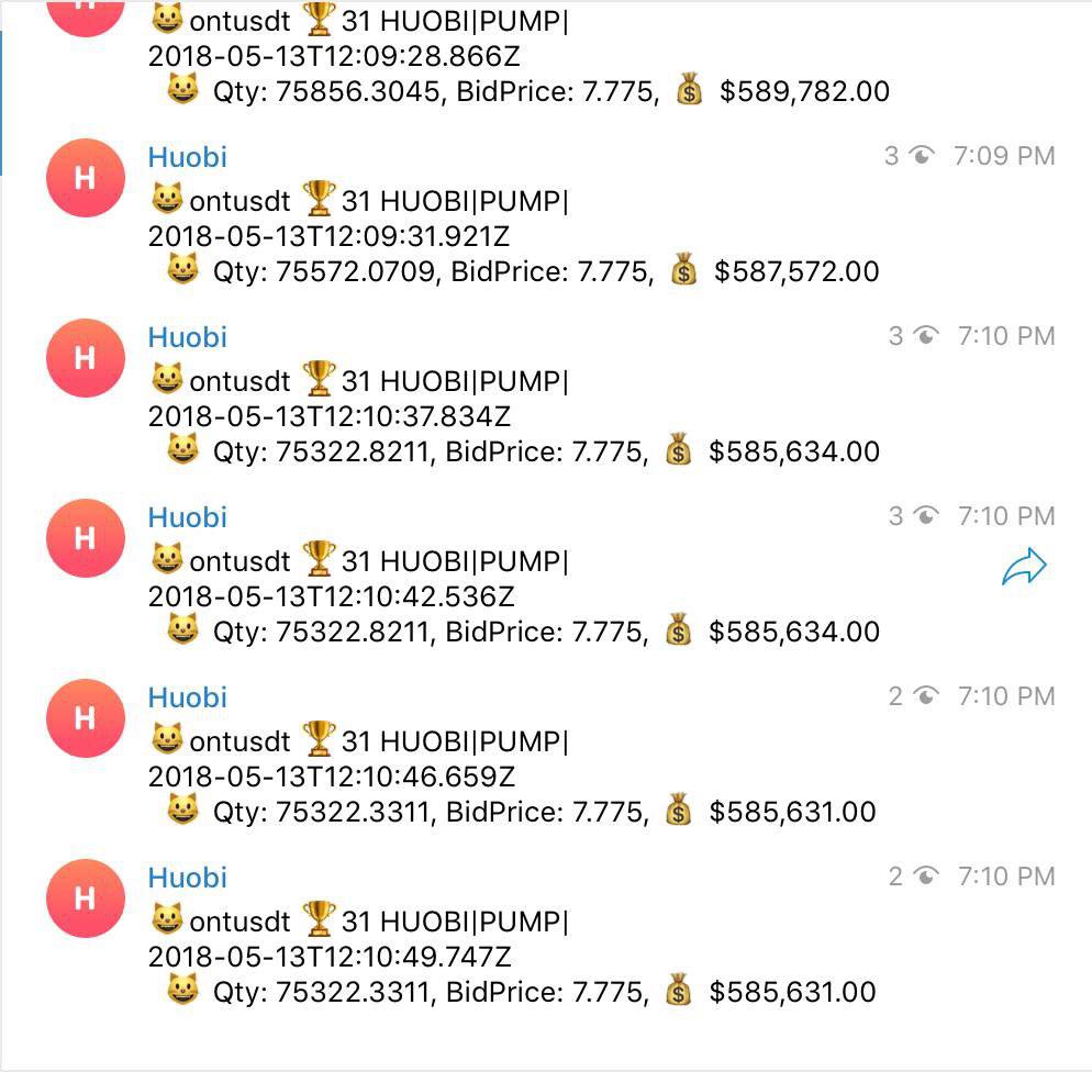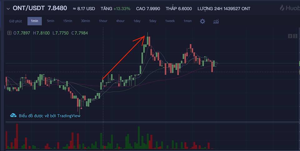 2. Pump : Có một lượng tiền lớn gom vào có thể đẩy giá tăng nhẹ trong thời gian ngắn hạn (Từ 1-3%) (tín hiệu 2) – Lúc này nếu ra vào chuẩn xác có thể ăn lãi từ 1-3% trong thời gian ngắn