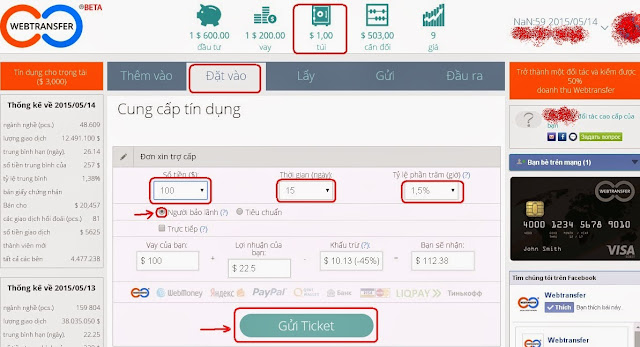 Lưu ý : các bạn phải tích vào ô Người bảo lãnh nhé ( để khi người vay lỡ không đủ khả năng thanh toán thì webtransfer vẫn trả cho các bạn )