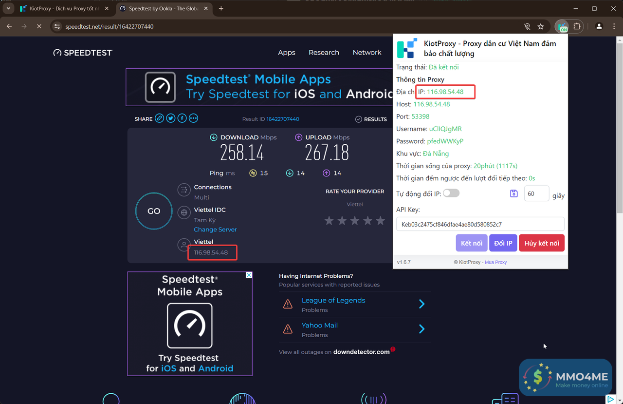 (Hình ảnh check tốc độ vào mạng của proxy KiotProxy)