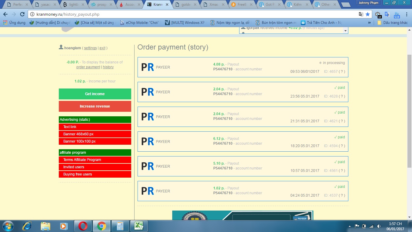 Cậu cho mình xin cái số ví Payeer để mình RCB lun cho cậu nè . 100*5%=5 *60% =3 RUB nhé cậuthanks bác trước nhé![]()
