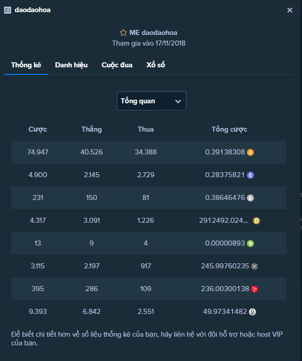 nhắc tới số này mình cũng từng bay hơn 2tr doge với đủ các sàn dice =)) Hồi đó là hơn 100tr. giờ là hơn 3 tỏi hixĐù 2tr doge tính ra giờ cũng hơn 3 tỷ VND rồi![]()