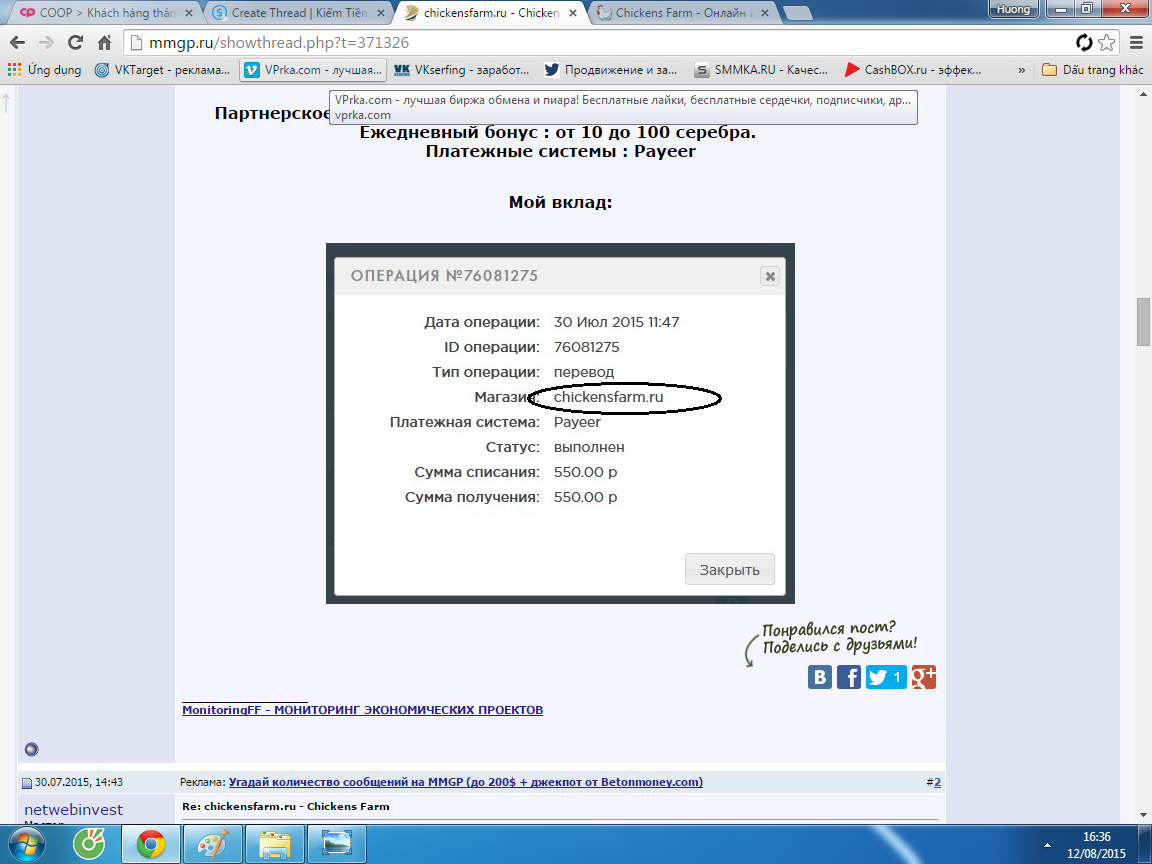 Trang này cũng nuôi gà nhưng nó ko tặng gà các bác ạ, nó tặng cho minh 1500coin để mua gà thui